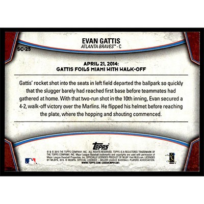 This is a 2015 Topps Opening Day Superstar Celebrations Evan Gattis baseball card. The card is #SC-25 and pictures show condition. Team(s): Atlanta Braves
