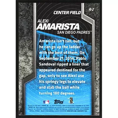 This is a 2015 Topps Robbed Alexi Amarista baseball card. The card is #R-2 and pictures show condition.
