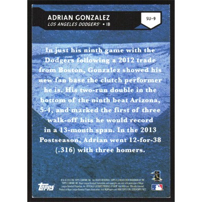 This is a 2015 Topps Stepping Up Adrian Gonzalez baseball card. The card is #SU-9 and pictures show condition.