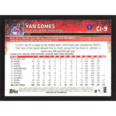 This is a 2015 Topps Team Sets Yan Gomes baseball card. The card is #CI-9 and pictures show condition.