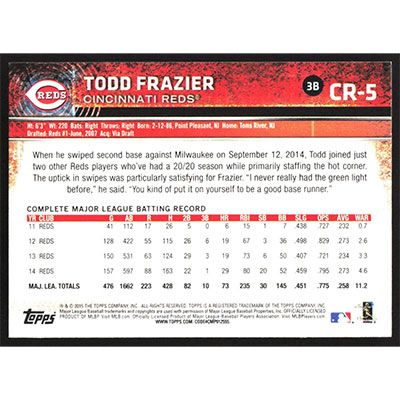 This is a 2015 Topps Team Sets Todd Frazier baseball card. The card is #CR-5 and pictures show condition.