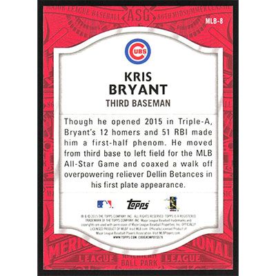 This is a 2015 Topps Update All Star Access Kris Bryant baseball card. The card is #MLB-8 and pictures show condition.
