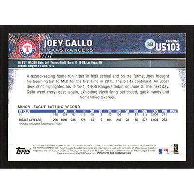 This is a 2015 Topps Update Chrome Joey Gallo baseball card. The card is #US103 and pictures show condition.