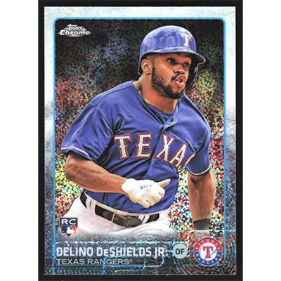 This is a 2015 Topps Update Chrome Delino DeShields Jr. baseball card. The card is #US144 and pictures show condition. Team(s): Texas Rangers Rookie Card (RC)