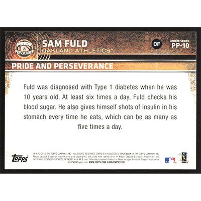 This is a 2015 Topps Update Pride and Perseverance Sam Fuld baseball card. The card is #PP-10 and pictures show condition.