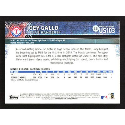 This is a 2015 Topps Update Joey Gallo baseball card. The card is #US103 and pictures show condition.