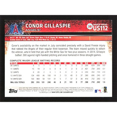 This is a 2015 Topps Update Conor Gillaspie baseball card. The card is #US112 and pictures show condition.