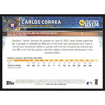 This is a 2015 Topps Update Carlos Correa baseball card. The card is #US174 and pictures show condition.