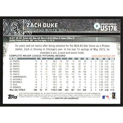 This is a 2015 Topps Update Zach Duke baseball card. The card is #US178 and pictures show condition.