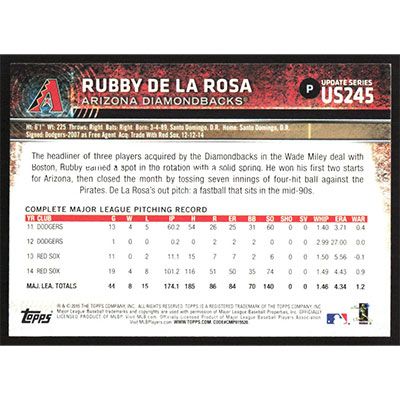 This is a 2015 Topps Update Rubby De La Rosa baseball card. The card is #US245 and pictures show condition.