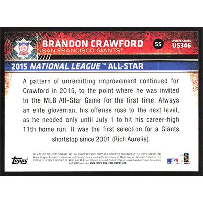 This is a 2015 Topps Update Brandon Crawford All-Star baseball card. The card is #US346 and pictures show condition.