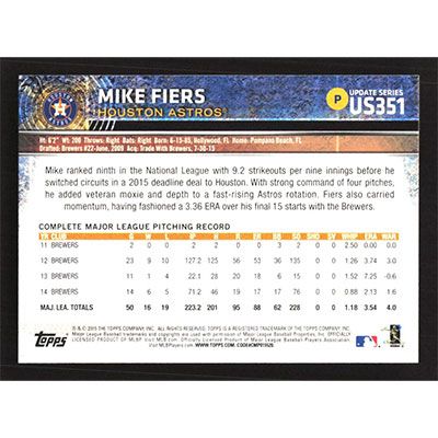 This is a 2015 Topps Update Mike Fiers baseball card. The card is #US351 and pictures show condition.