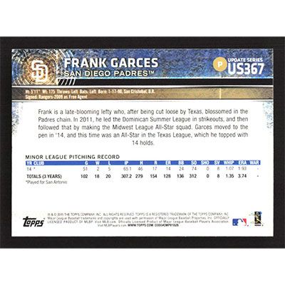 This is a 2015 Topps Update Frank Garces baseball card. The card is #US367 and pictures show condition.