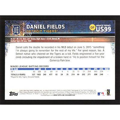This is a 2015 Topps Update Daniel Fields baseball card. The card is #US99 and pictures show condition.