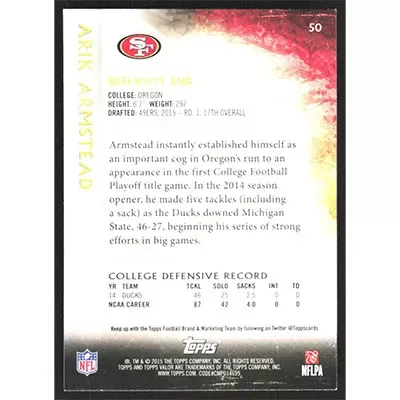 This is a 2015 Topps Valor Arik Armstead football card. The card is #50 and pictures show condition.
