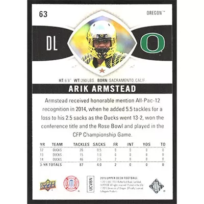 This is a 2015 Upper Deck Arik Armstead Star Rookie football card. The card is #63 and pictures show condition.
