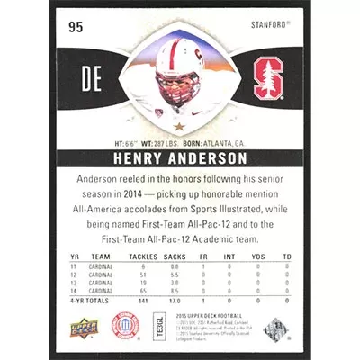 This is a 2015 Upper Deck Henry Anderson Star Rookie football card. The card is #95 and pictures show condition.