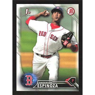 This is a 2016 Bowman Prospects Anderson Espinoza baseball card. The card is #BP40 and pictures show condition.