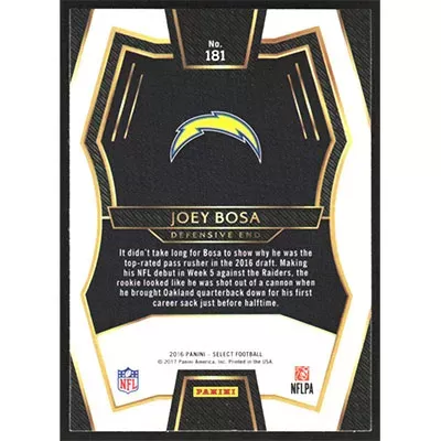 This is a 2016 Select Prizm Tri Color Joey Bosa football card. The card is #181 and pictures show condition.