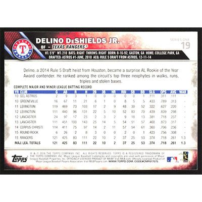 This is a 2016 Topps Delino DeShields Jr. Future Stars autographed baseball card. This card has been signed, in blue, by Delino DeShields Jr., and is guaranteed authentic by Ballcardz.com. The card is #19 and pictures show condition.