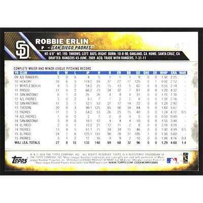 This is a 2016 Topps Robbie Erlin baseball card. The card is #473 and pictures show condition.