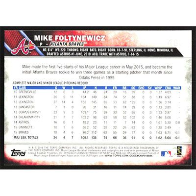 This is a 2016 Topps Mike Foltynewicz baseball card. The card is #480 and pictures show condition.