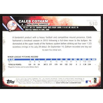 This is a 2016 Topps Caleb Cotham baseball card. The card is #530 and pictures show condition.
