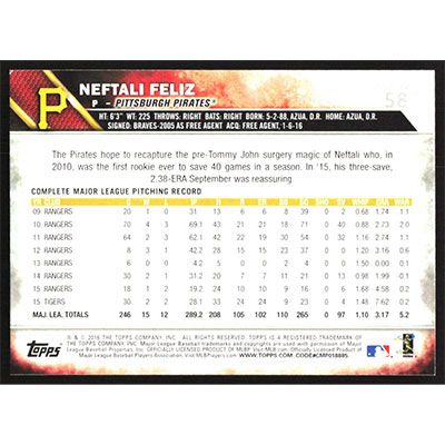 This is a 2016 Topps Neftali Feliz baseball card. The card is #587 and pictures show condition.