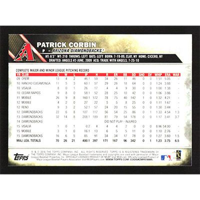 This is a 2016 Topps Patrick Corbin baseball card. The card is #629 and pictures show condition.