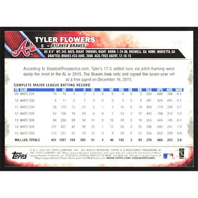 This is a 2016 Topps Tyler Flowers baseball card. The card is #701 and pictures show condition.