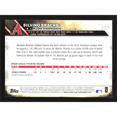 This is a 2016 Topps All-Star Game Silver Silvino Bracho baseball card. The card is #251 and pictures show condition.