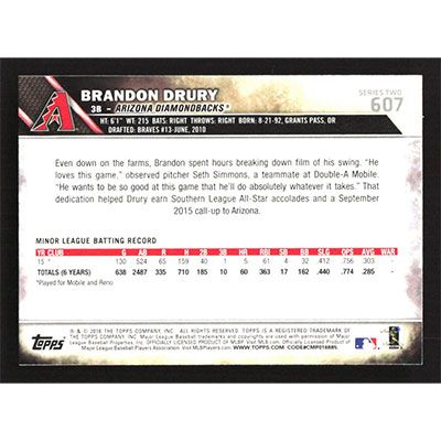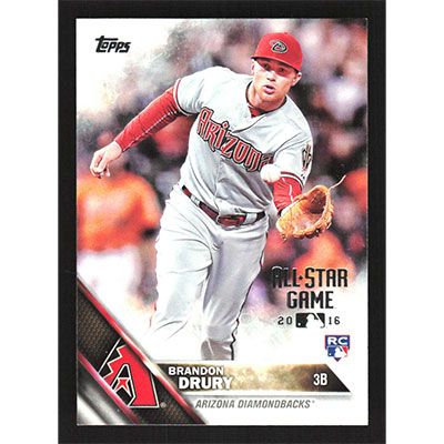This is a 2016 Topps All-Star Game Silver Brandon Drury baseball card. The card is #607 and pictures show condition. Team(s): Arizona Diamondbacks Rookie Card (RC)