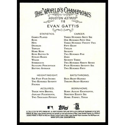 This is a 2016 Topps Allen & Ginter Evan Gattis baseball card. The card is #118 and pictures show condition.