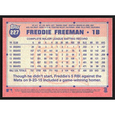 This is a 2016 Topps Archives Freddie Freeman baseball card. The card is #227 and pictures show condition.