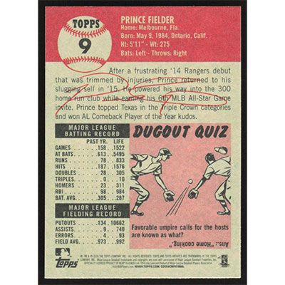 This is a 2016 Topps Archives Prince Fielder baseball card. The card is #9 and pictures show condition.