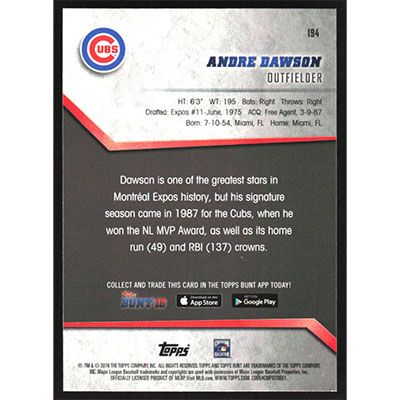 This is a 2016 Topps Bunt Andre Dawson baseball card. The card is #194 and pictures show condition.