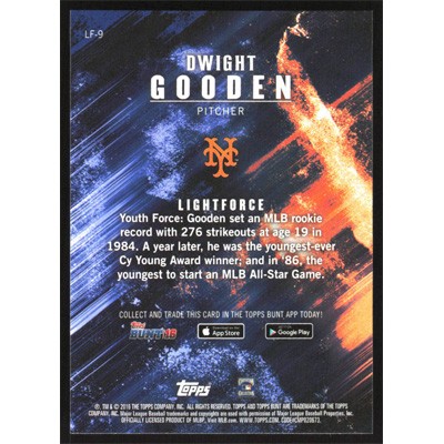This is a 2016 Topps Bunt Light Force Dwight Gooden baseball card. The card is #LF-9 and pictures show condition.