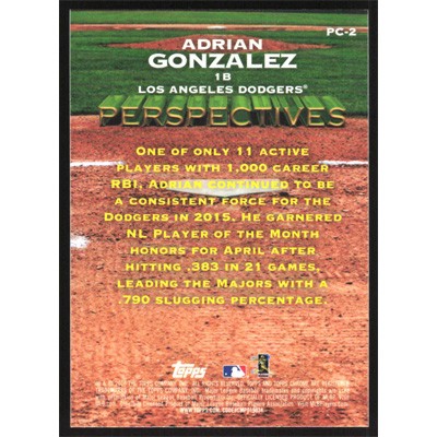 This is a 2016 Topps Chrome Perspectives Adrian Gonzalez baseball card. The card is #PC-2 and pictures show condition.