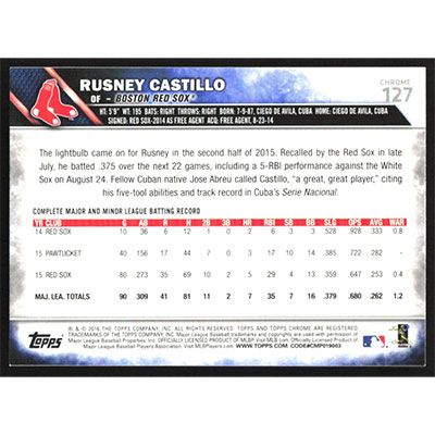 This is a 2016 Topps Chrome Sepia Refractors Rusney Castillo baseball card. The card is #127 and pictures show condition.