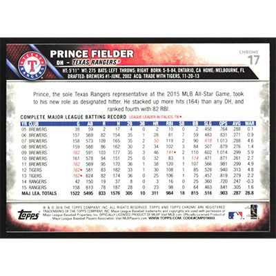 This is a 2016 Topps Chrome Sepia Refractors Prince Fielder baseball card. The card is #17 and pictures show condition.