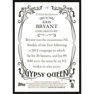 This is a 2016 Topps Gypsy Queen Kris Bryant baseball card. The card is #79 and pictures show condition.