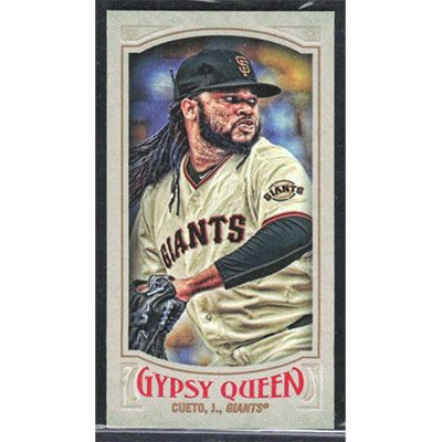 This is a 2016 Topps Gypsy Queen Mini Johnny Cueto baseball card. The card is #32 and pictures show condition.