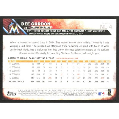 This is a 2016 Topps National League All-Stars Dee Gordon baseball card. The card is #NL-4 and pictures show condition.