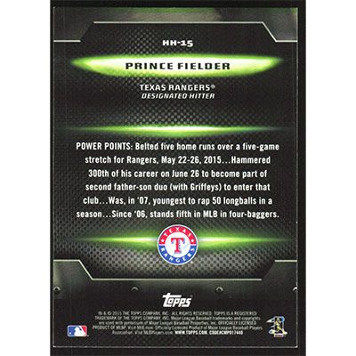 This is a 2016 Topps Opening Day Heavy Hitters Prince Fielder baseball card. The card is #HH-15 and pictures show condition.