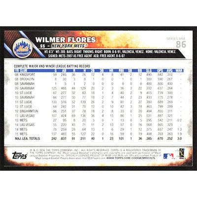 This is a 2016 Topps Rainbow Foil Wilmer Flores baseball card. The card is #86 and pictures show condition.