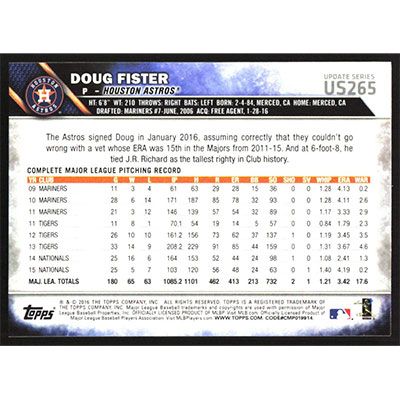 This is a 2016 Topps Update Doug Fister baseball card. The card is #US265 and pictures show condition.