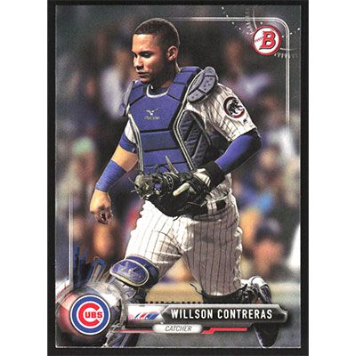 This is a 2017 Bowman Willson Contreras baseball card. The card is #46 and pictures show condition.