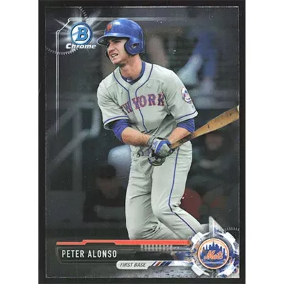 This is a 2017 Bowman Draft Chrome Peter Alonso baseball card. The card is #BDC-83 and pictures show condition.