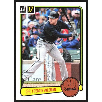 This is a 2017 Donruss '83 Retro Variations Freddie Freeman baseball card. The card is #RV-2 and pictures show condition.
