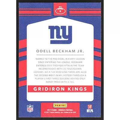 This is a 2017 Donruss Gridiron Kings Odell Beckham Jr. football card. The card is #8 and pictures show condition.